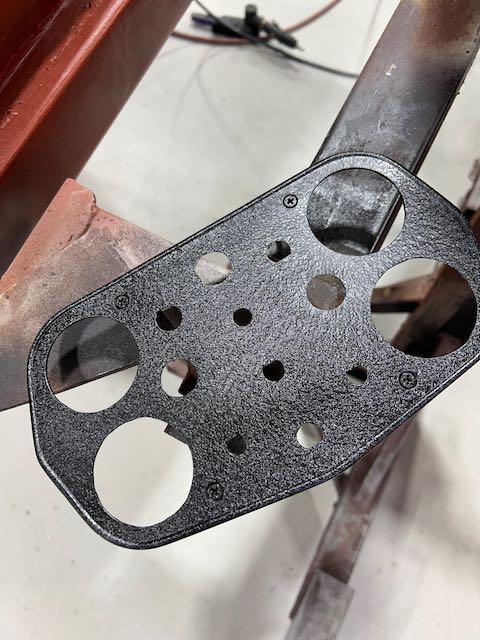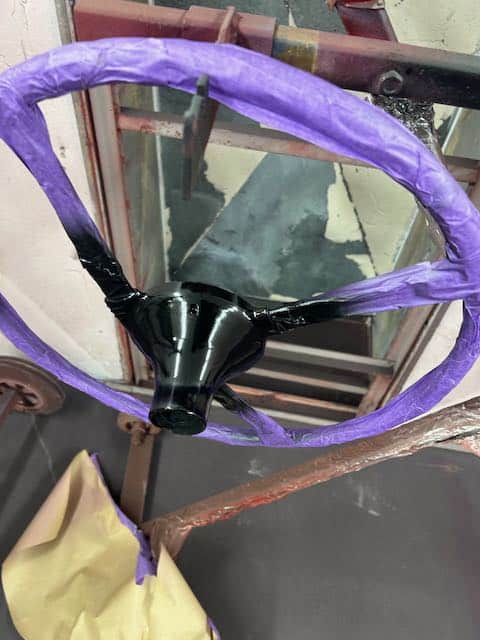 Final few repairs made to the chassis before that was primed, a little bit of bodywork and that was painted satin black before assembly was started.