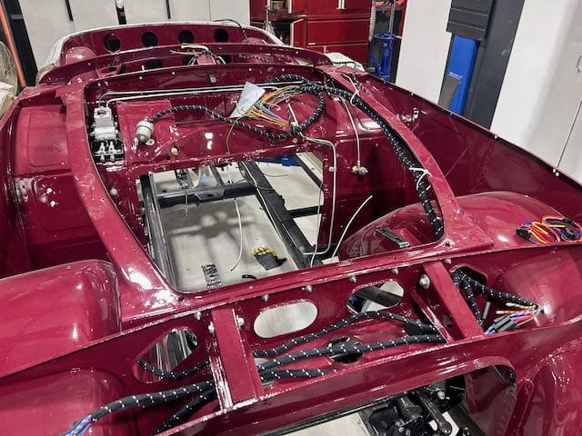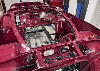 Moving along. Fitting parts to the assembled bodyshell. All new brake lines made up and fitted, new wiring loom going in and more parts cleaned and painted. This car had had the windscreen stanchions cut short so I built them back up with weld and filed them to shape ready for the chrome plater.