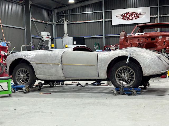 The Doretti has arrived and is awaiting inspection to see exactly what is going to be involved. At some time in its past it was involved in a front end crash and the whole front inner structure was removed and lots of other stuff changed to fit a different front nosecone. We’ve sourced another inner structure and will piece it all together to make everything right. It’s been fairly well butchered and the replacement panels aren’t in great condition either so it’s going to be a very involved job. I can’t wait to get started!