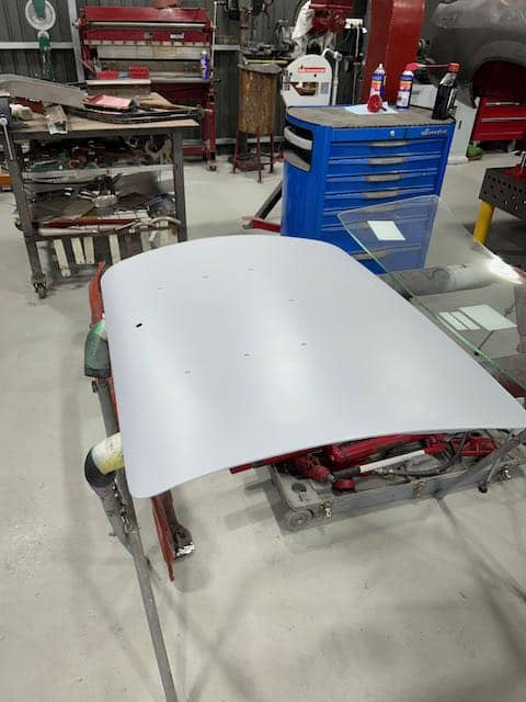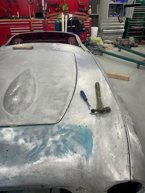 Starting to get more exciting as the outer panels get lined up and gapped. Also trial fitted the body moulds before the aluminium panels were very carefully prepped and sealed with an aluminium specific epoxy primer.