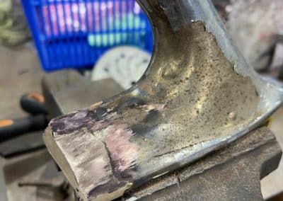 It’s been stripped down and there sure is a lot of work ahead. Lots of rust, lost of old repairs to correct and lots of missing things to be remade. Plus the chassis needs to be straightened.