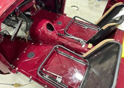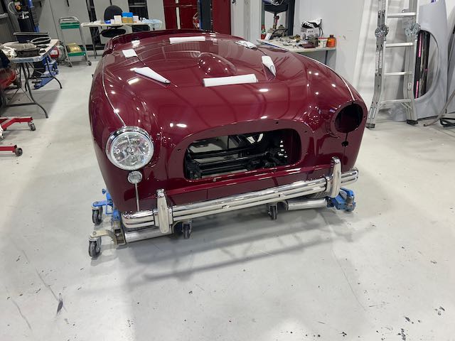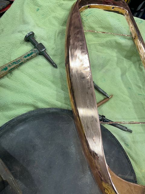 It’s always exciting to start assembly. Putting all the reconditioned, painted or plated parts back on the car. The grille required a lot of work. I had the plater give it extra coats of copper, this was then blocked down just like paint before the chrome was applied.