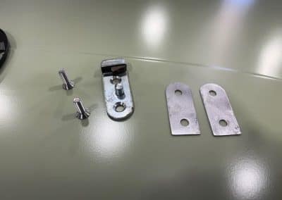 Lots of small parts have been painted black and panels in epoxy primer. Doors and bonnet were de skinned to clean up all the corrosion in the seams. Doors were test fitted without skins to check gaps before the original skins were refitted.